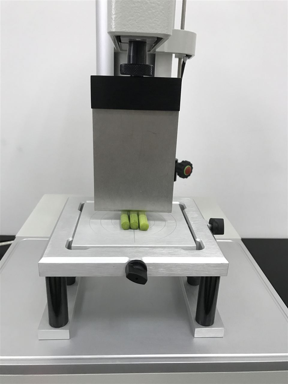 (3)P/5柱形探头:5mm柱形探头。将果蔬切成规格一样大小的样品,用柱形探头对样品进行全质构分析(TPA),用于测试果蔬的硬度、弹性、回复性、咀嚼性和内聚性等指标。