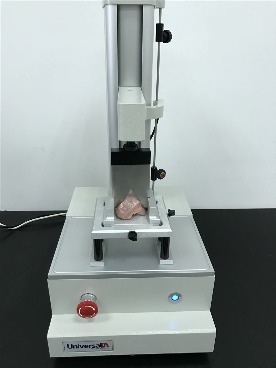 将蒸煮好的鸡肉块放于剪切刀具的正下方,测试条件设置如下