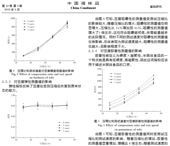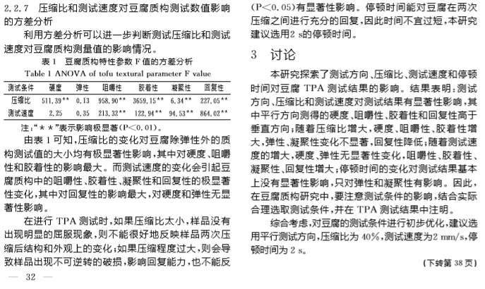 2019年9月,《中国调味品》期刊在线发表了南昌大学题为“TPA测试条件对豆腐质构测试结果的影响”的文章,在文章中,研究人员使用上海腾拔Universal TA质构仪测定豆腐的硬度、弹性、回复性、咀嚼性等指标。