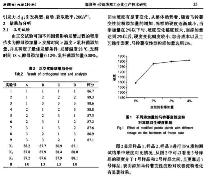 2019年,《食品与发酵科技》期刊在线发表了四川省食品发酵工业研究设计院题为“传统冻糕工业化生产技术研究”的文章,在文章中,研究人员使用上海腾拔Universal TA质构仪测定传统冻糕的硬度、弹性、回复性等指标。