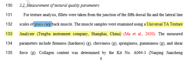在该研究论文中,研究人员利用上海腾拔的Universal TA研究型国产质构仪用于测定草鱼肌肉的硬度、弹性、咀嚼性和剪切力。