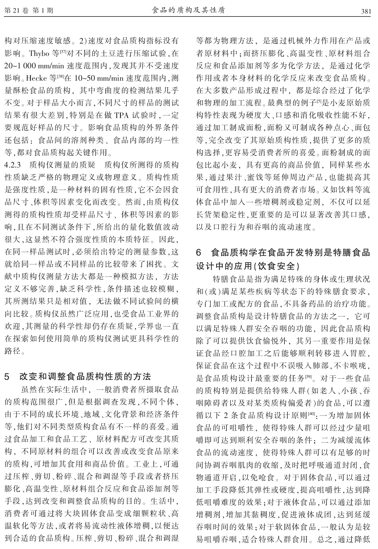 食品质构是食品材料与结构性质的感官体现,直接影响食品的口腔行为、风味释放和感官愉悦,是影响消费者对食品的喜好和可接受性的重要因素。本文阐述食品质构的定义、质构性质的分类、感知途径和仪器测量方法等,以期让科研人员更好地理解食品质构及其性质,推动该领域研究的发展,为食品工业设计开发营养可口的高质量食品提供理论依据。