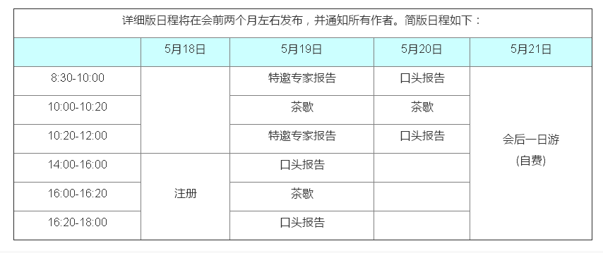 详细版日程将在会前两个月左右发布,并通知所有作者。简版日程如下: | ||||