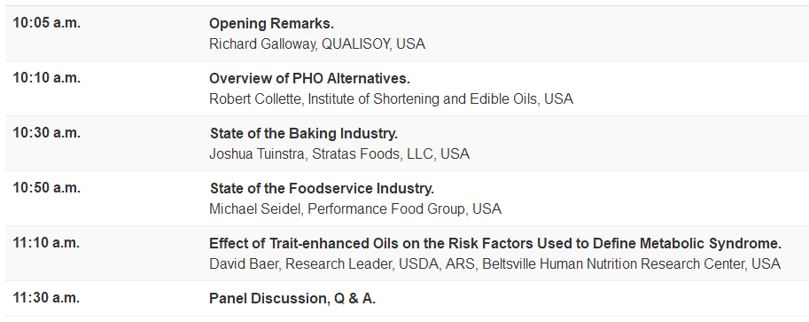Presenters in this session will discuss the state of the baking and frying industries in a post-partially hydrogenated oil (PHO) world. Discover current challenges facing these industries as well as consumer research on labeling products made with fully hydrogenated oil. Hear from experts in the field about the functionality testing results of various PHO alternatives. Finally, learn from a USDA research leader about the health impacts of high stability oils, including results from a recent clinical study.